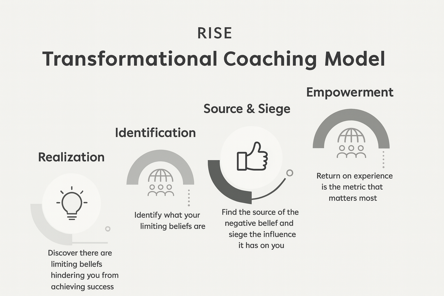 U-volution follows a structured process through the R.I.S.E. model, guiding individuals toward self-actualization